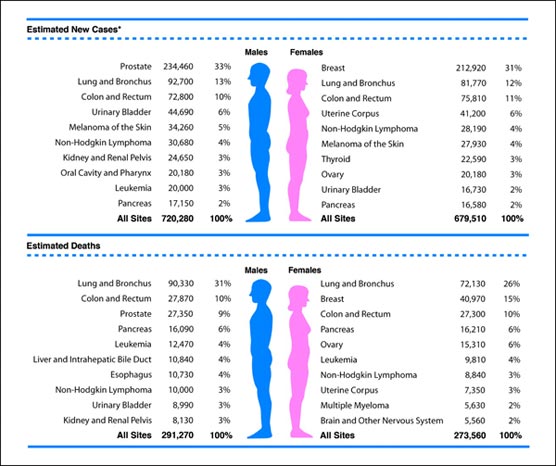 Ten Leading Cancer Types for the Estimated New Cancer Cases and Deaths, by Sex, US, 2006